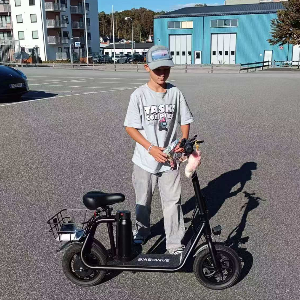 SAMEBIKE SM-C01 is a step-through foldable electric scooter with seat suitable for any height. It is suitable for city riding and commuting, and can also be carried for travel.
